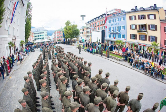 Geburtstage müssen nicht unbedingt mit einer Torte gefeiert werden – oder vielleicht gab es diese sogar irgendwo, am Hauptplatz Lienz aber feierte das Jägerbataillon 24 der 6. Jägerbrigade sein Jubiläum äußerst seriös mit der Militärmusik Tirol, verschiedenen Kompanien, Abordnungen der Traditionsverbände, Geistlichen und politischen Vertretern. Zahlreiche Lienzer nahmen als Zuschauer teil und obwohl Wind und Regen das Publikum gegen Ende der Veranstaltung schrittweise vertrieb, wurde der Applaus immer lauter, was auch daran gelegen haben mag, dass der durch den Abend führende Oberstleutnant Thaddäus Weiler irgendwann aufhörte, das Publikum zu kommandieren. Die kleine Anarchie, dass der Kaffeehausbetrieb in den Schanigärten nahezu normal weiterging, dass Kinder ungeniert spielten, lachten und schrien aber auch erste Salutierversuche machten und sich einige Jugendliche bemühten, ihre befreundeten Rekruten zum Lachen zu bringen, machte es den Festrednern zwar nicht gerade einfach, hatte aber auch einen gewissen Charme, denn es zeigte die Normalität, die in der Beziehung zwischen dem Jägerbataillon 24 und der Bevölkerung besteht.