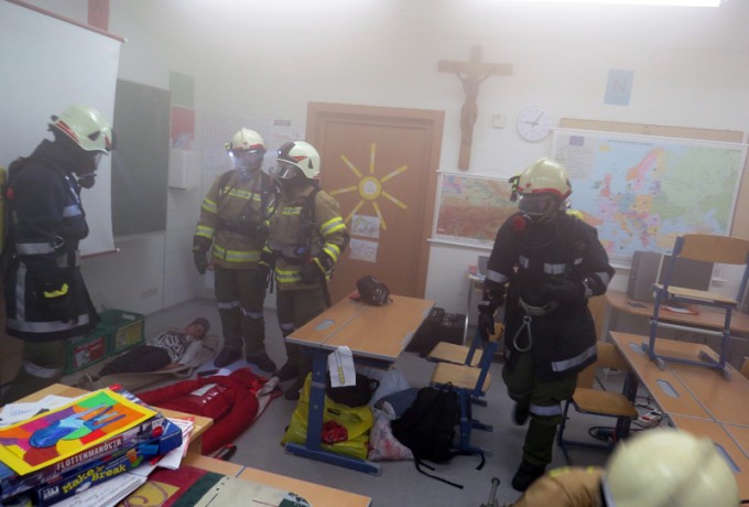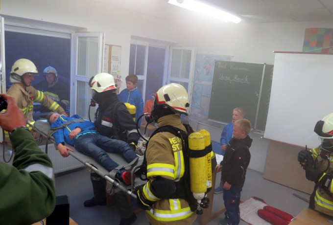 Die Feuerwehr kam in die Reimmichl Volksschule St. Veit nur zum Üben.
