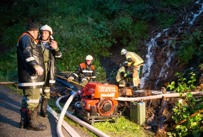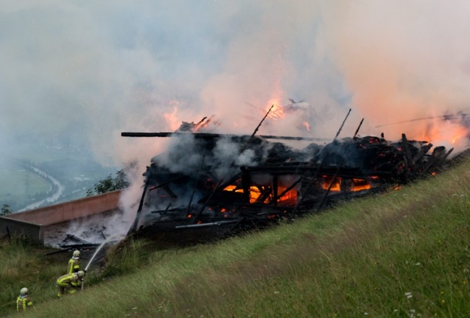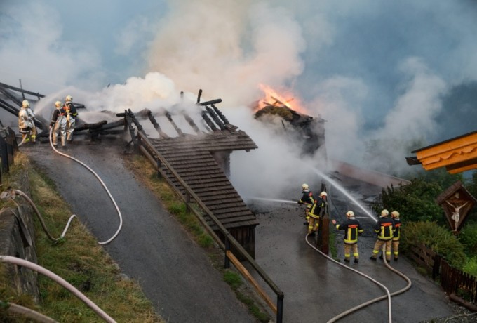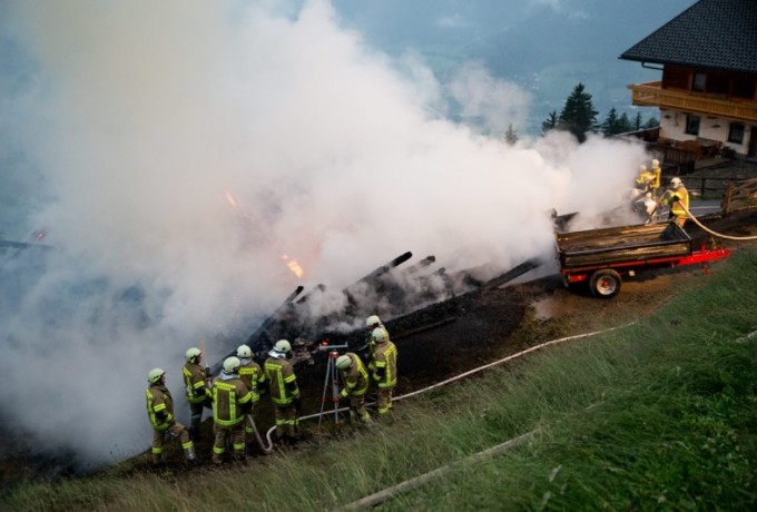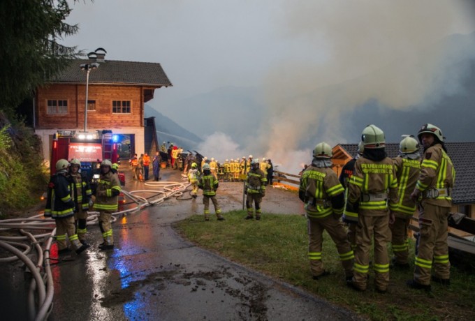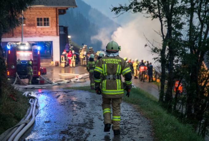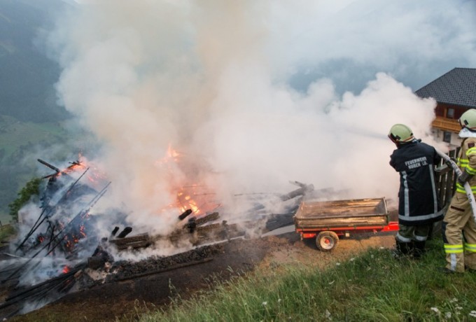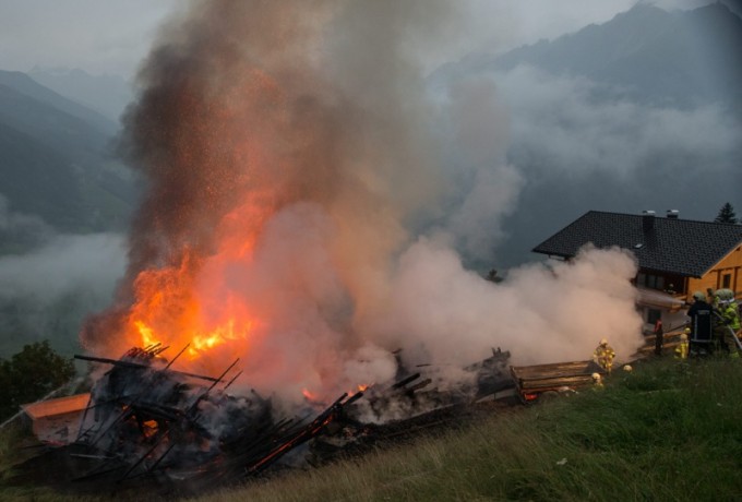 Ein Blitzschlag hat heute Abend gegen 19 Uhr am Klaunzerberg im Gemeindegebiet Matrei i.O. vermutlich ein landwirtschaftliches Gebäude in Brand gesetzt. Laut ersten Informationen gab es keine Verletzten. Feuerwehren aus Matrei, Virgen, Huben, Hopfgarten und Kals versuchen derzeit (21.15 Uhr) ein Übergreifen der Flammen auf das Wohngebäude zu verhindern. Das Wirtschaftsgebäude war nicht mehr zu retten, es brannte bis auf die Grundmauern nieder.