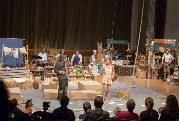 Es war ein gelungener Auftakt, den der alte OLALA-Haudegen Adrian Schvartzstein  – besser bekannt als "The Green Man" – mit seinem Ensemble am Dienstag in den Lienzer Stadtsaal zauberte. Begleitet von einem tollen Klezmer-Quartett, das eineinhalb Stunden ohne Pause für musikalischen Witz und Schwung sorgte, überschlugen sich auf dem Stadtsaal-Parkett die Ereignisse. Gespielt wurde nicht auf der Bühne, das Publikum saß im Halbkreis um die Akteure und die Wahl des Ortes erwies sich als richtig. In der Duregger Schmiede hätte es den Abend verregnet.