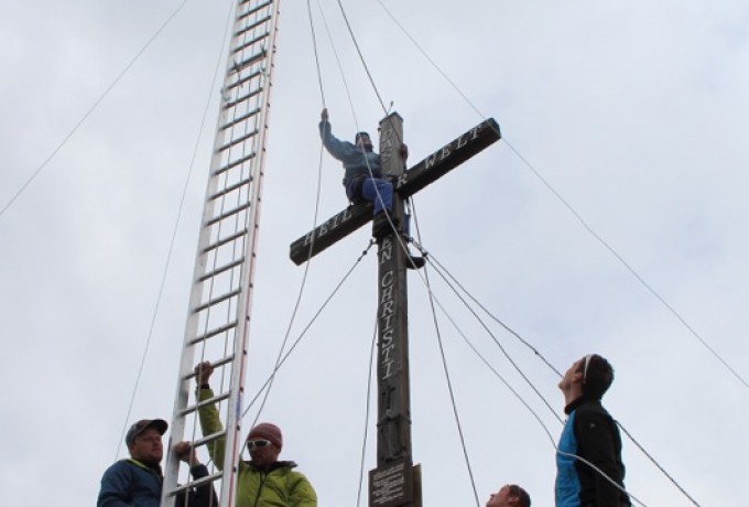 Über das nächtliche Gedenken an jene Männer, die vor 65 Jahren das Heimkehrerkreuz auf der Schleinitz aufstellten, haben wir bereits berichtet. 15 Meter hoch ist das Alukreuz, gefertigt von Berufsschülern, das zu diesem Zweck auf die Schleinitz getragen und mittels LED-Lampen illuminiert wurde. Hier sind Bilder von der Errichtung des nur temporär installierten Kreuzes, das zahlreiche Helfer auf den Gipfel trugen.
