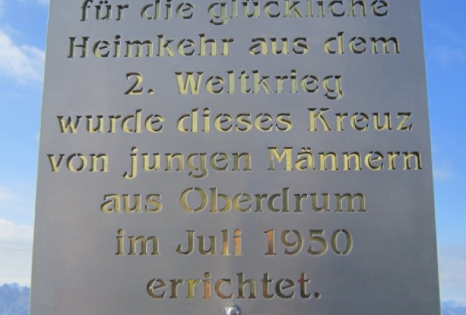 Herbert Oberhauser erzählte den Anwesenden, wie es 1950 von der Idee bis zur Fertigstellung unter teilweise schwierigen Umständen umgesetzt wurde. Zweimal seien die Jugendlichen, die das Kreuz aufstellen wollten, von einem aufziehenden Wetter wieder ins Tal getrieben worden. Am Tag der Gedenkmesse blieb der Himmel blau und das Kreuz erhielt eine neue, von Stephan Hofer angefertigte Tafel mit dem Text: „Zur Ehre Gottes und als Dank für die glückliche Heimkehr aus dem 2. Weltkrieg wurde dieses Kreuz von jungen Männern aus Oberdrum im Juli 1950 errichtet“.