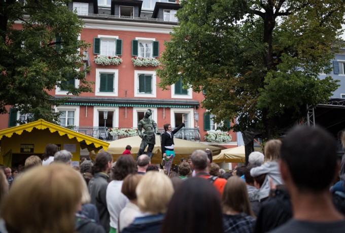 Solche sogenannten Walkacts tauchen während des Festivals immer wieder auf und tragen dazu bei, der Stadt jenes besondere Flair zu geben, das die einzelnen Straßentheaterinszenierungen miteinander verbindet. "Ich spaziere durch die Stadt und lasse mich inspirieren", sagte ein Besucher und setzte sich in den Schanigarten eines Kaffeehauses, um von dort aus das Geschehen zu beobachten.