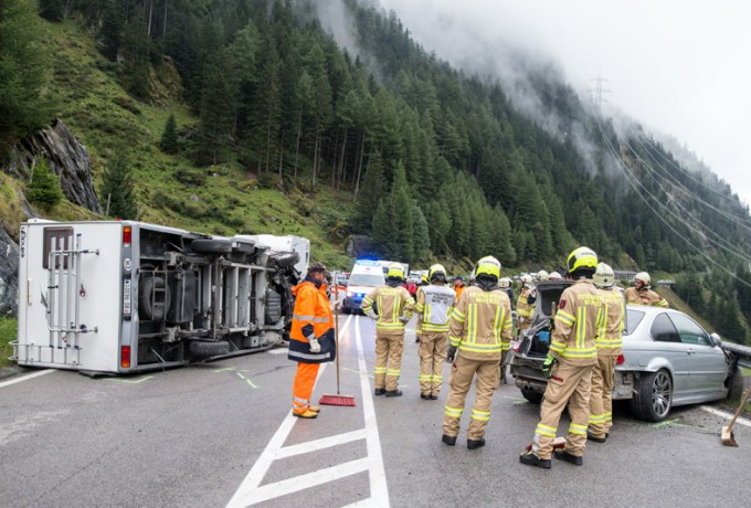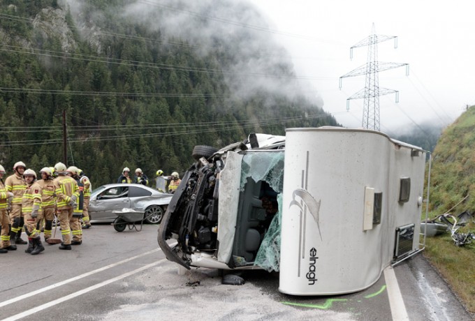 Zu einem schweren Verkehrsunfall kam es am späten Vormittag des 14. September gegen 11:00 Uhr auf der Felbertauern Bundesstraße im Gemeindegebiet von Matrei i.O. in Richtung Mittersill. Nachdem ein 22-jähriger Osttiroler mit seinem PKW mehrere Fahrzeuge überholt hatte, wollte er sich wieder einordnen. Dabei geriet der PKW ins Schleudern und stieß zuerst gegen eine Leitschiene und dann gegen ein entgegenkommendes Wohnmobil. Durch die Wucht des Aufpralles wurde das Wohnmobil umgeworfen.