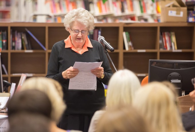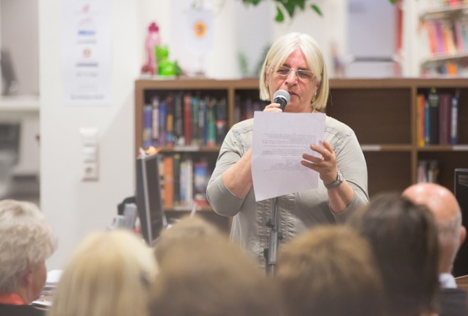 Ins Finale schafften es vier Teilnehmer. Frieda Kleinlercher präsentierte einen kurzen Mundarttext, Camillo Girstmair verzückte die anwesende Büchereigarde mit einer Lobeshymne auf eben jene, David Neunhäuserer trug Jugendgedichte vor und Christine Teichmann verzauberte das Publikum mit einem Text über Flanellpyjamas und die wundersame Liebe ihrer Ehe. Schon ihr erster Text hatte das Publikum sehr berührt, mit der Flanell-Lobeshymne auf ihren Ehemann sicherte sie sich letztendlich den Sieg und den prall gefüllten Spendentopf als Siegerprämie.