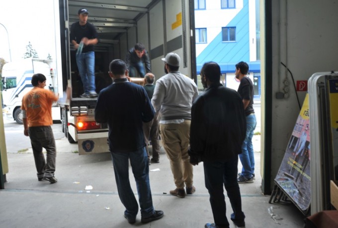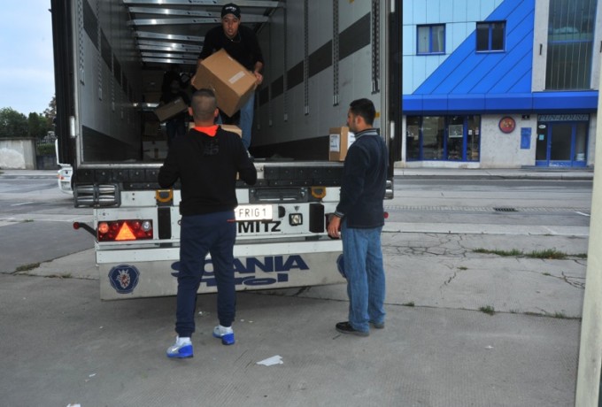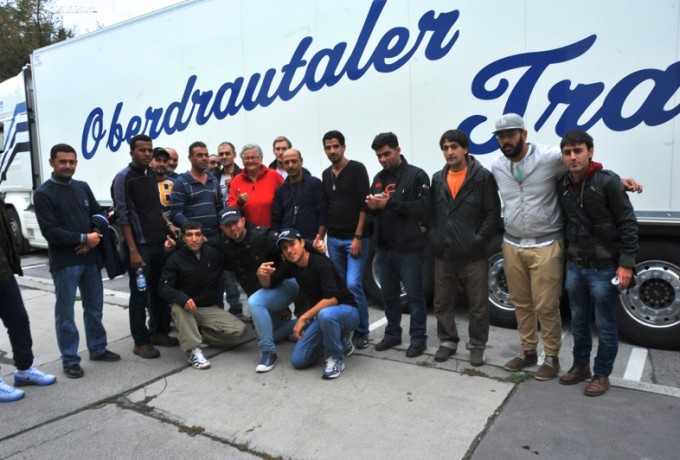 Ein Sattelschlepper der Firma Heregger wurde schon in Schwechat entladen, ein kompletter Lkw voll mit Hilfsgütern ging nicht in den Osten, sondern in das Lienzer Flüchtlingsquartier in der Angerburg, wo ebenfalls dringend vor allem Winterbekleidung benötigt wurde. Ein weiterer Lkw macht sich am Montag in Richtung Burgenland auf den Weg. „Und jetzt beladen wir gerade den fünften Laster, einen Sattelschlepper der Firma Pirkner Events, der schon zu einem Viertel voll ist.“ Sowohl beim Auf- als auch beim Entladen der Güter sind Asylwerber als Helfer im Einsatz. Auch sie sind von der Hilfsbereitschaft der Osttiroler begeistert.