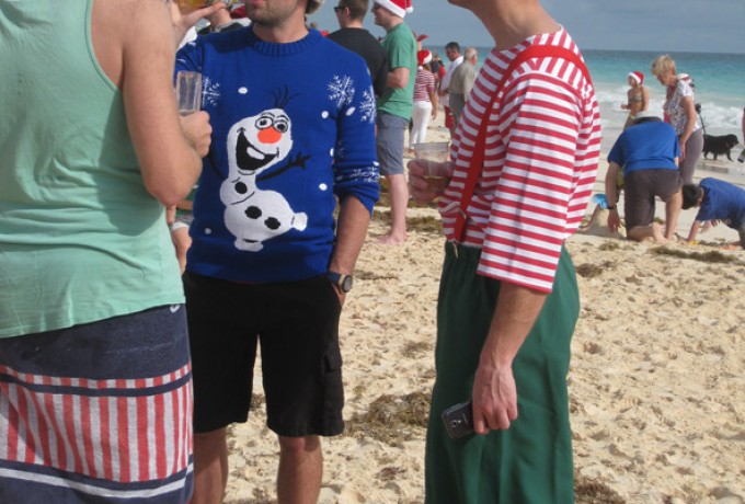 Eine sehr gesellige Tradition unter der Expat-Community Bermudas ist es, sich am Christtag auf einem der Strände zu treffen und ordentlich vor- oder – wie in unserem Fall – nachzufeiern. Mit reichlich Champagnerflaschen und diversen Weihnachtskostümen ausgerüstet und bei hoffentlich gutem Wetter wird der Strand so voll wie das ganze Jahr über nicht. Mittlerweile mischen sich auch einige Einheimische unter die vielen Expats. Besinnlich geht es bei dem Trubel hier auf der Insel zu Weihnachten nicht zu. Zur Besinnung – für viele Strandbesucher im sprichwörtlichen Sinn – kann man eigentlich nur in den eigenen vier Wänden kommen. Aber ob das nur für Bermuda typisch ist, wage ich zu bezweifeln.