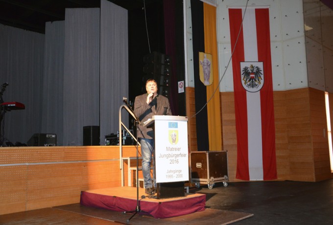 Unter dem Motto „Junge Talente – die Zukunft Matreis“, holte Kulturreferent Norbert Riepler erfolgreiche junge Gemeindebürger aus Wirtschaft, Sport und Kultur repräsentativ auf die Bühne, darunter den zweifachen Landessieger des Tiroler Lehrlingswettbewerbes 2015, Lukas Resinger, die Motorsport-Nachwuchstalente Markus und Martin Ortner, die Bogenschützen Florian und Mario Niederegger vom Bogensportverein Iseltal, die Eishockeyspieler Tobias und Florian Unterweger vom UECR Huben und die mehrfache Landesmeisterin Maria Pretis von der Schwimmunion Osttirol. Weitere junge Talente, die nicht persönlich anwesend sein konnten, wurden in Form von Bildern präsentiert, etwa die Eishockeyspieler Julian Großlercher und Clemens Unterweger, der Schifahrer Alexander Köll, Enduro-Meister Matthias Wibmer, die mehrfache Tiroler Judo-Meisterin Christina Raffler, Opernsänger Andreas Mattersberger und andere.