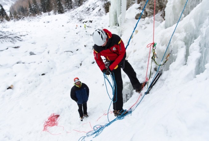 Die Ausbildung zum staatlich geprüften Berg- und Schiführer dauert zwei Semester und ist unterteilt in mehrere Module. Das Modul „Eisfallklettern“ ist eines der letzten im Lehrgang. Das vorausgesetzte Niveau der Bergsportler ist hier bereits recht hoch und wird beim Eisklettern weiter gefestigt und überprüft. Neben den Kursinhalten „Führungsmethoden im Steileis“, „Methodischer Aufbau eines Eiskletterkurses“, „Sicheres Fortbewegen und Seiltechnik“ ist das Trainieren von effektiven Bergemethoden ein Schwerpunkt.