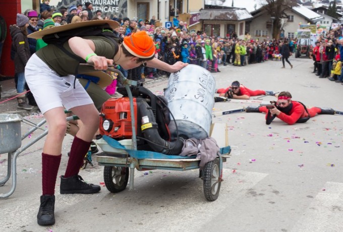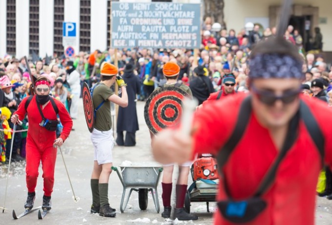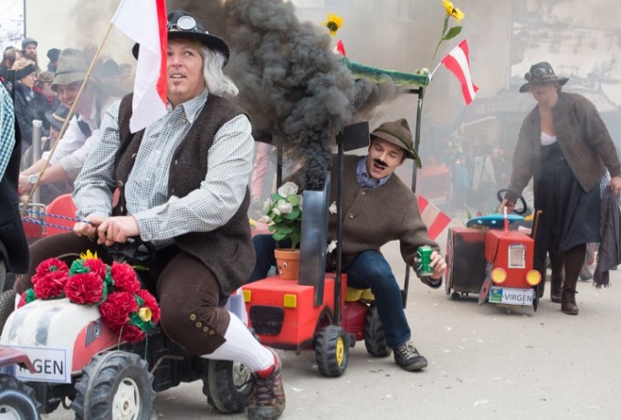 Nicht "woll woll" und nicht "lei lei", kein "Rante Putante" und auch sonst kein Motto passt zum Matreier Faschingsumzug. Will man unbedingt den vielleicht größten Umzug im ganzen Bezirk, es gibt ja derlei nicht sehr viele, einem Motto unterordnen, so muss das vielleicht „zomm zomm“ heißen.