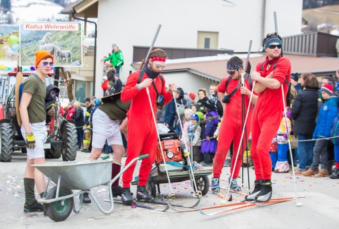 Ebenso bewundernswert waren an diesem Nachmittag die Vorschläge einen James Bond-Dreh in den Ort zu holen, der bei der Sanierung der Gemeindekassen sicher positiv wirken könnte, als die Aufklärung darüber, dass das Hirtenhundeprojekt in Kals vor allem ein „Wadenbeißer“ sei. Die Musikkapelle Huben schickte haufenweise Schneemänner und die Nachbarn aus Virgen wurden ebenso ordentlich aufs Korn genommen, stinkt doch angeblich ihr Traktor-Oldtimer-Verein zum Himmel. Auch Kaiser Andreas Köll war sich nicht zu schade, sich seinem Gemeindevolk persönlich und in voller Montur zu zeigen.