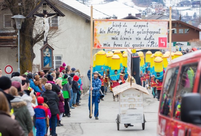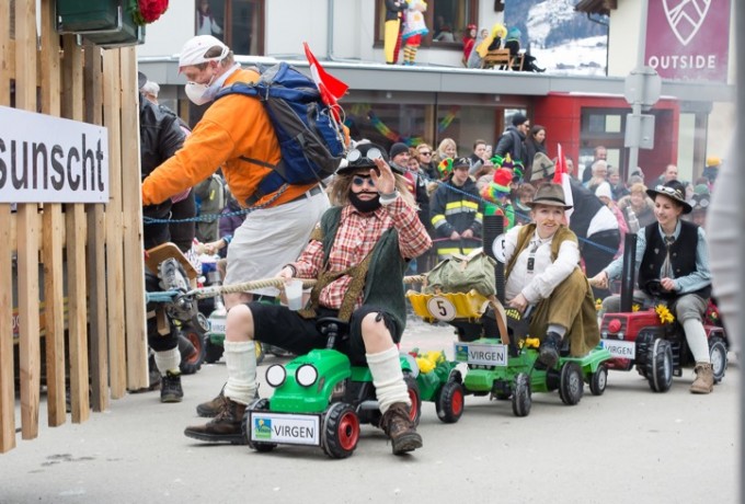 Den Anfang machte die Musikkappelle unter dem Motto „bisch du deppat, beim König hots getscheppat…“ bezugnehmend auf die vor kurzem bei Puls4 ausgestrahlte Fernsehsendung. Es folgten die Matreier Kindergartenkinder als Cowboys und einer Gruppe Mäuse, die im Schloß Weißenstein Opernball feierten. Der Matreier Glücksdrache, ein Ententeich oder der Circus Paradies (Zedlacher Pfonholz) sowie der scheidende Bundespräsident Heinz Fischer nebst Gattin gaben sich in Matrei ebenso die Ehre wie Seiler und Speer, Semino Rossi, DJ Ötzi und die neuen Tag- und Nachtwächter der Tauerngemeinde.