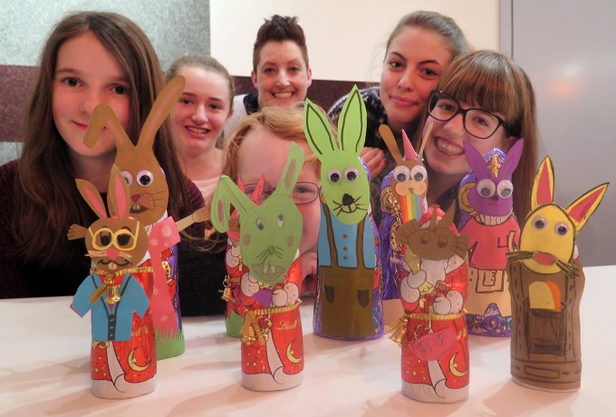 Wir haben es eigentlich immer schon geahnt. Figürlich sind der Schoko-Nikolaus und sein saisonaler Nachfolger, der Schoko-Osterhase irgendwie verwandt. Jetzt bewiesen Jugendliche aus Sillian und Heinfels, dass man mit etwas Papier, Klebstoff und Einfallsreichtum tatsächlich aus alten Nikoläusen junge Osterhasen zaubern kann, die bestens schmecken und uns erzählen: „Wegwerfen ist keine Lösung!“