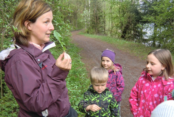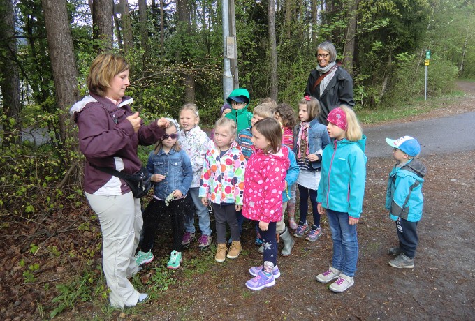 Angelika Zwischenberger nahm eine Tristacher Kindergartengruppe auf einen Kräuter-Spaziergang mit.
