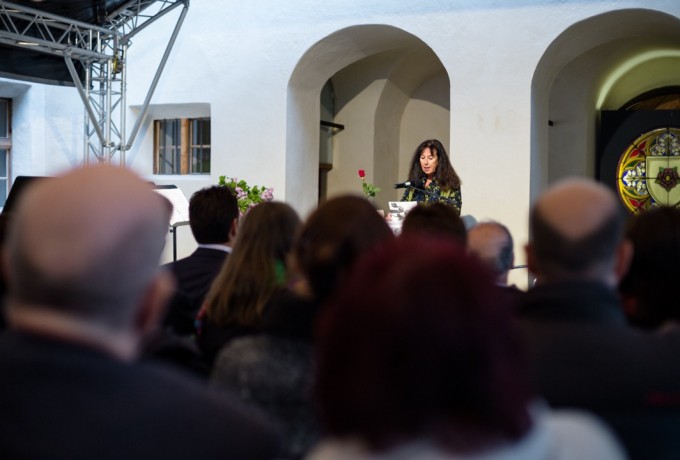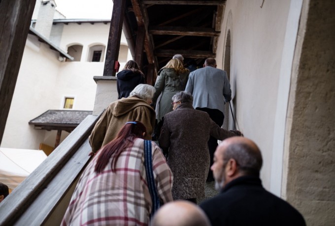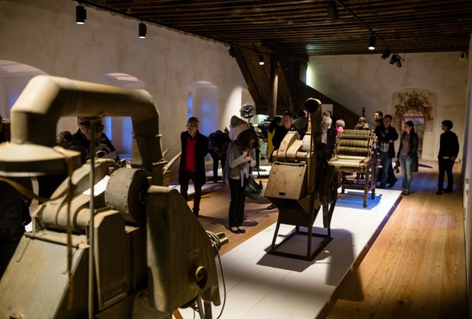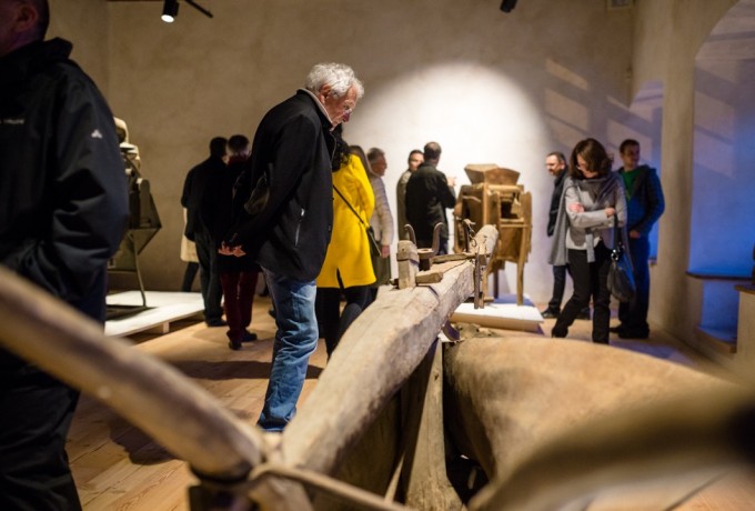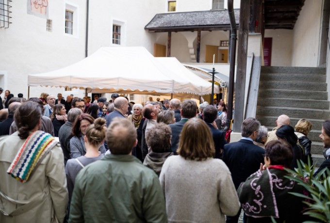 Und so öffnete nach Hausherrin Elisabeth Blanik die Kuratorin Silvia Mader mit aufmunternden Worten dem geladenen Publikum die Museumstüre zu den ausgestellten Schätzen. Seit 1942 – also mitten in Kriegszeiten – befindet sich Schloss Bruck im Besitz der Stadt Lienz und seit 1946 findet man das Museum der Stadt Lienz im Schloss. Neben einem heimatkundlichen Schwerpunkt und der Ausstellungsarbeit mit Egger-Lienz-Originalen konnte man ab etwa Mitte der 1950er Jahre eine vielbeachtete Ausstellung an bäuerlichen und gewerblichen Geräten bewundern.