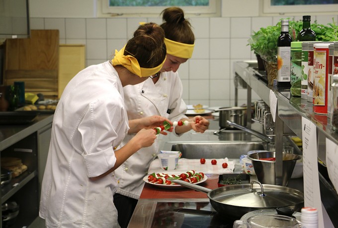 „Ihr braucht keine Bewertung abzugeben, lasst es euch einfach schmecken“, erklärte uns Regina Mayr, die Direktorin der Fachschule für wirtschaftliche Berufe, besser bekannt als „Klösterle“, bei einem eisgekühlten Aperol zur Begrüßung im Garten der Schule. Dort traf sich am Donnerstag, 2. Juni, ein kleines Grüppchen bunt zusammen gewürfelter Gäste, eingeladen zu einem besonderen Mittagessen – einem Menü mit Benotung.