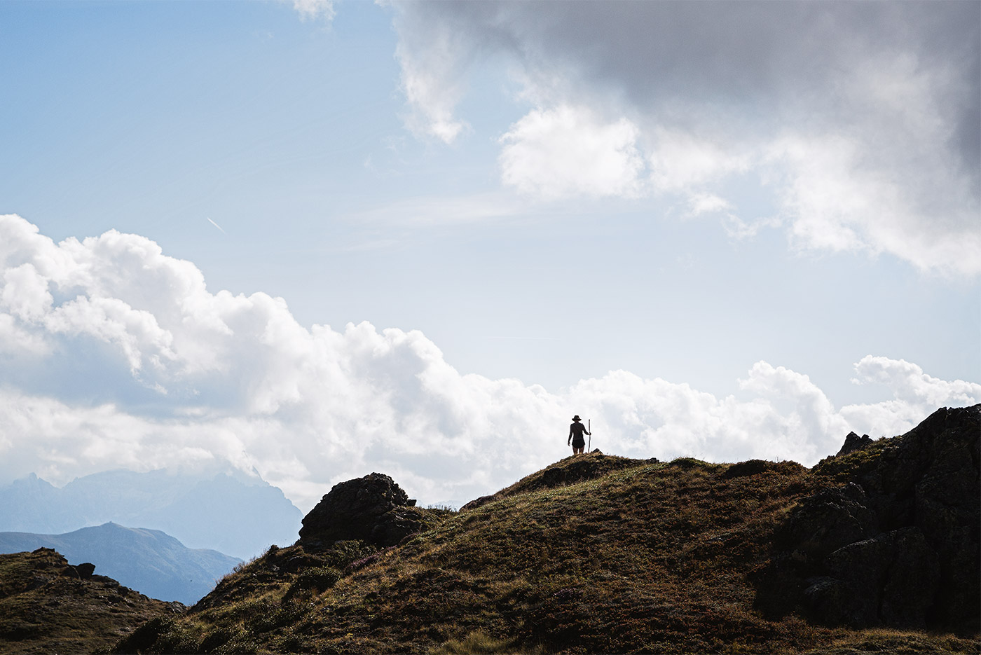 Da war zum Beispiel der Albert, ein grad' Siebziger aus dem Dorf am Fuße der Alm, hager im Erscheinen, laut in der Stimme. Es vergingen kaum drei Tage, an denen ich ihn nicht auf irgendeinem Grat in der Ferne durch meinen Gucker erspähte. Und sah ich ihn nicht, hörte ich ihn. So voll sein Rucksack für eine Tageswanderung schien, so gefüllt war dieser mit abertausenden Geschichten. Aus seiner Brusttasche lugten neugierig die Köpfchen bunter Wiesenblumen und -kräuter. Ihre Namen hatten etwas Fabelhaftes, mit geschlossenen Augen konnte ich sie wie kleine Elfen über die Berghänge tanzen sehen: Da gab es die kugelige Teufelskralle und den Klappertopf in zottiger, kleiner und großer Ausführung, den Berg- und Gold-Pippau, den Alpen-Petersbart und den sternblütigen Steinbrech, das Taubenkropf-Leimkraut oder das Blutströpfchen (Kohlröschen), das, seinem Namen im Aussehen getreu, die alpinen Matten säumt. Der Albert, geboren als siebzehntes von 18 Kindern, nahm mich im Zuge dieses Almsommers mit auf eine Reise einzigartiger Familiengeschichte. Ein Wiedersehen schloss er stets mit: „Kathrin, jetzt hab' ich dir genug erzählt, jetzt lass' ich dich.“ Und er zog von dannen bis zum nächsten Mal.