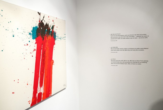 Dieses Rot und der expressive Umgang mit der Farbe, die Markus Prachensky rhythmisch inszenierte, machen den Maler unverkennbar und zu einem der prägenden Klassiker der österreichischen Kunstgeschichte der Nachkriegszeit. Prachensky (1932–2011) stammte aus einer Innsbrucker Architekten- und Künstlerdynastie mit böhmischen Wurzeln und folgte bereits in jungen Jahren dem Credo der Avantgarde.