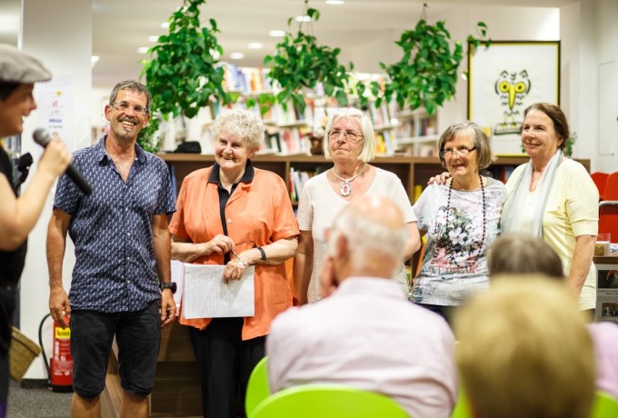 Den Anfang machte Mieze Medusa mit einem Opferlamm-Text, anschließend gab Heidi Lengauer einen Text zum Besten, dicht gefolgt von Slam-Debütantin Burgl Wurzer, Gertraud Patterer, Camillo Girstmair und Frieda Kleinlercher, die alle schon mehr oder weniger Slam-Erfahrung haben.