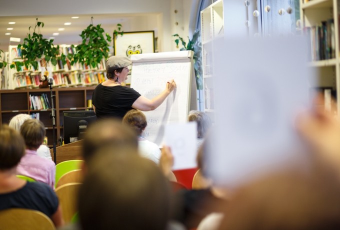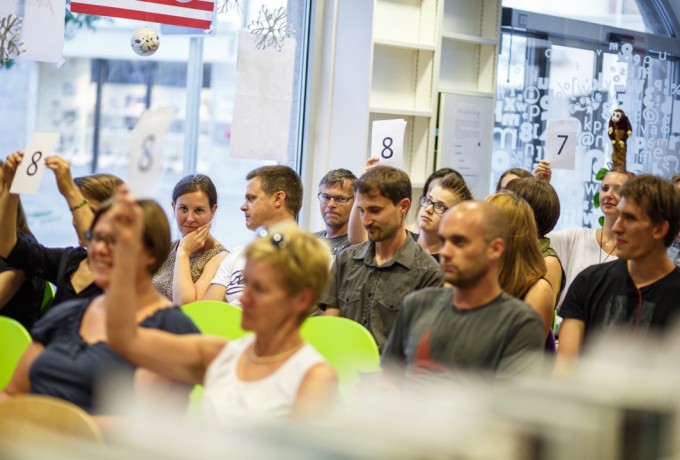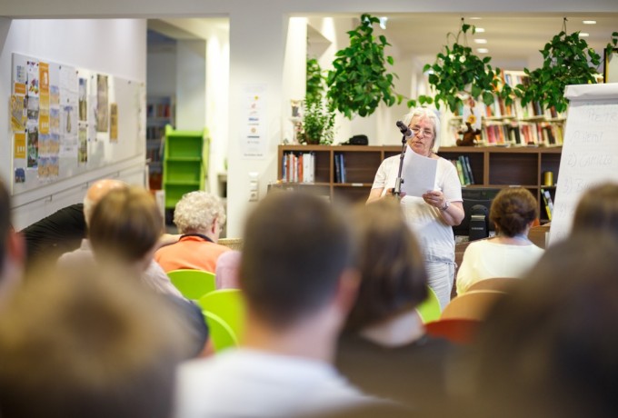 Bereits um 17:00 Uhr startete die Moderatorin des Abends, die österreichische Poetry-Slam -Legende – Mieze Medusa in einen interessanten Schreibworkshop. Es wurden schreiberische Feinheiten, Textstile und Vortragsarten genauso erläutert, wie deren Umsetzung auch sofort geübt. So verwundert es dann auch nicht, dass diesmal alle Teilnehmer am eigentlichen Slam direkt aus dem Workshop kamen.