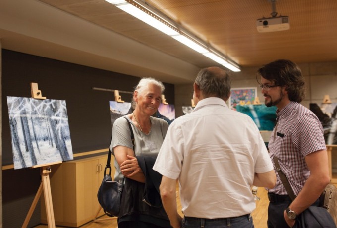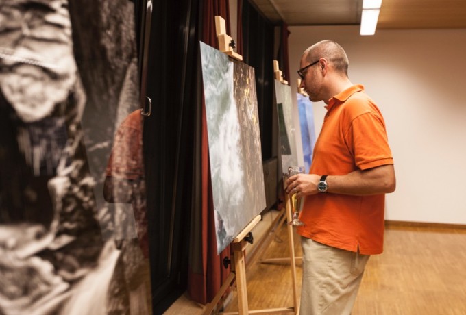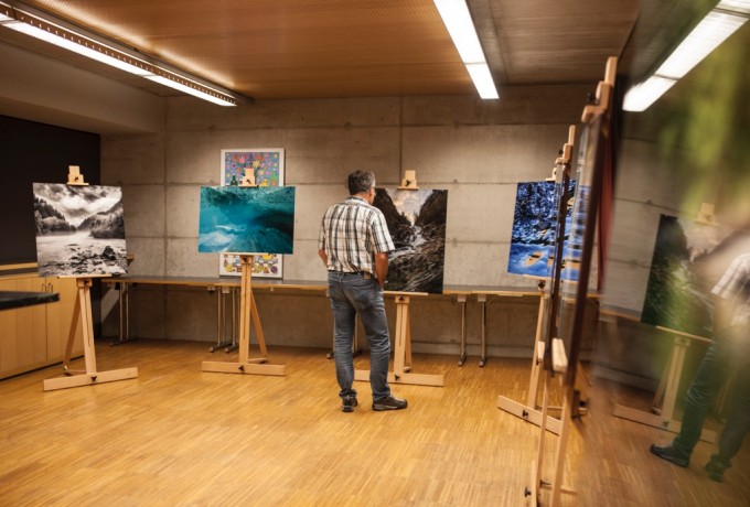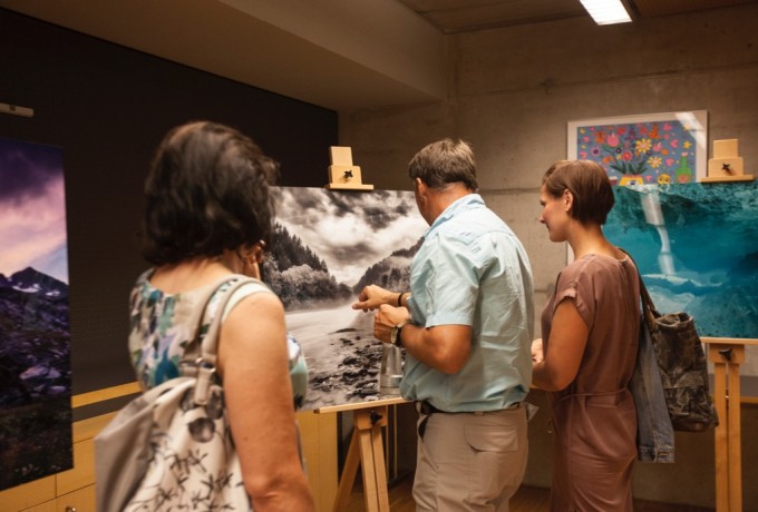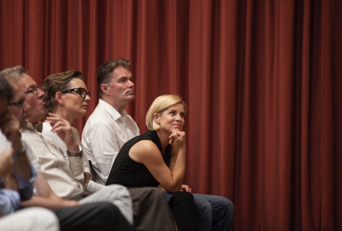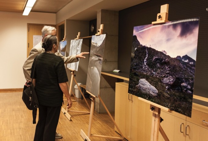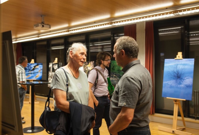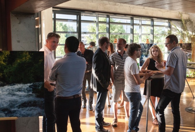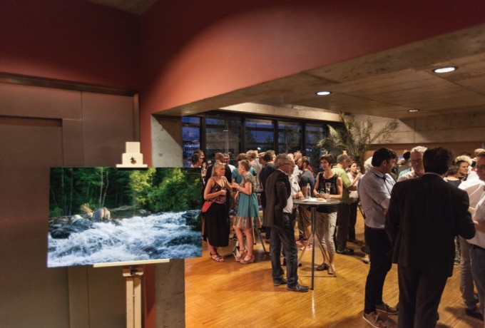Beim Eingang wird fleißig kontrolliert, ohne Einladung geht nichts. Die Sitzplätze sind limitiert und heiß begehrt. Ich bestehe den Security Check und habe noch Zeit, die Fotoausstellung „Der Fluss und seine Landschaften“ von Daniel Egger anzusehen. Sie soll im Rahmen der Premiere eröffnet werden und den Film bei seinen künftigen Vorführungen als eine Art Wanderausstellung begleiten. Im Stiegenhaus und Foyer gibt es Smalltalk, alle sind gespannt, was da auf sie zukommt. Der große Saal der Wirtschaftskammer füllt sich schließlich bis auf den letzten Platz.