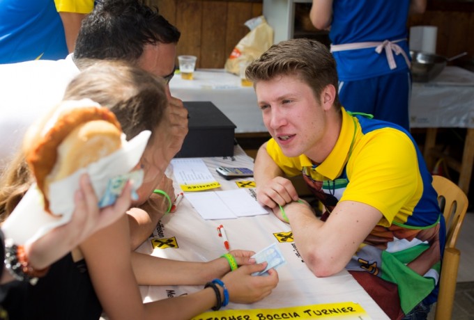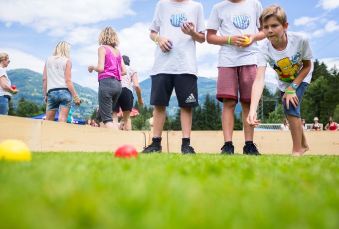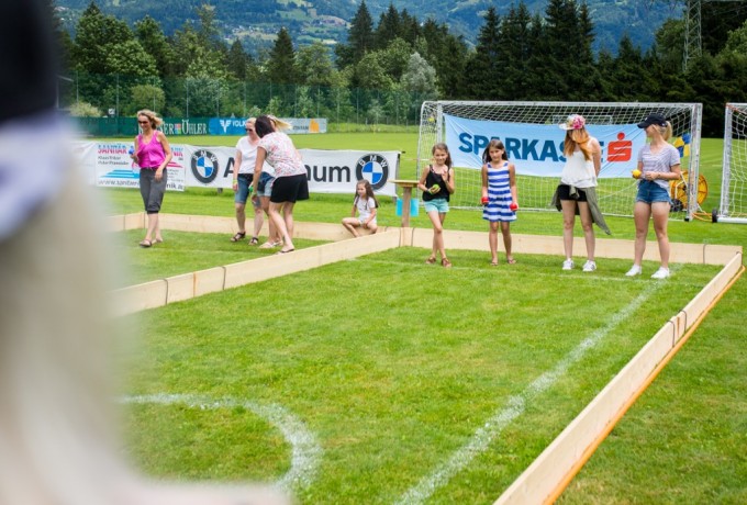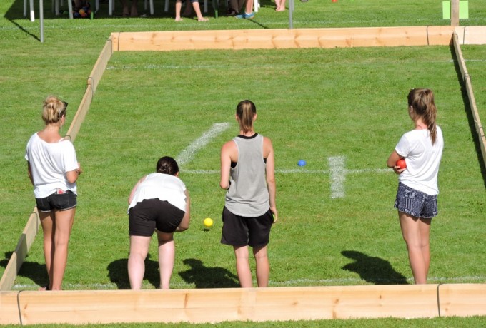 Dann üben sich nicht nur Schattseitner auf dem Rasen des Walder-Stadions in einer Ballsportart, bei der das Runde ausnahmsweise nicht ins Eckige muss. Wichtigstes Ziel beim Boccia ist die Annäherung der großen an die kleine Kugel. Ist das geschafft, kann der Gegner mit einem gezielten Wurf natürlich noch einmal alles durcheinander bringen.