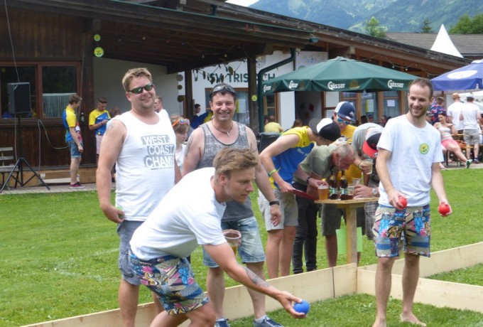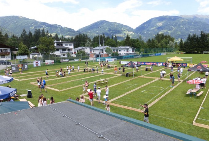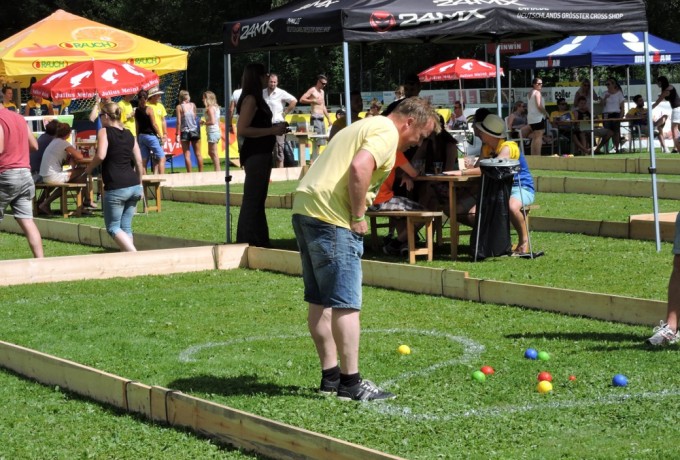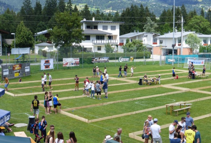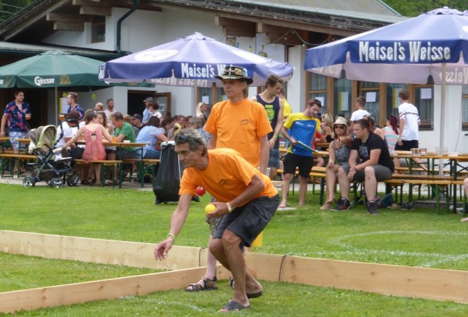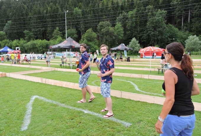 75 Zweierteams versuchten sich in diesem Ballspiel am 9. Juli auf fünf Plätzen mit je vier Spielfeldern. Wie bei der Fußball-EM gab´s erst eine Gruppenphase, die den ganzen Nachmittag dauerte. Ab 18.30 Uhr machten sich dann die besten drei jeder Gruppe und der beste Vierte im Achtelfinale ans Werk. Ab diesem Zeitpunkt galt der K.O.-Modus.