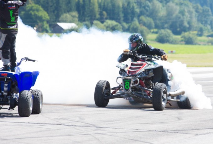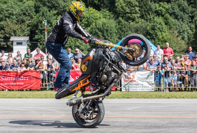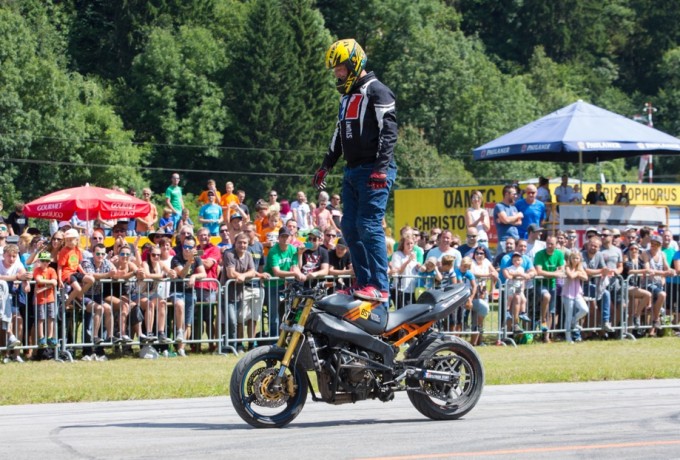Die unglaublich niedrige Reaktionszeit von Hubert Strengberger und dessen wuchtige Beschleunigung waren nicht zu toppen, auch nicht auf zwei Rädern. Drittschnellster wurde nämlich Robert Beznoska auf einer BMW HP4, die mit 205 Pferdestärken jedenfalls nicht über Muskelschwäche klagen kann. Hinter ihm auf Rang vier landete einer der Favoriten, die "rosa Kampfsau" der St. Pöltener Tuning-Werkstatt Dutter, mit sagenhaften 1300 Pferdestärken unter der wulstigen Haube.