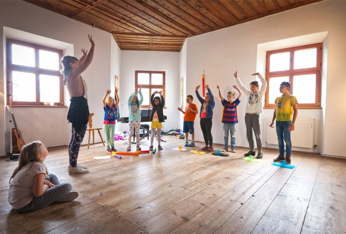 Die Werkstätten fanden Montag bis Freitag von 10 bis 14 Uhr statt. Ab 9 Uhr gab es ein allgemeines Programm, das jeweils ein Werkstätten-Leiter gestaltete. „Die spielerische Entfaltung kindlicher Kreativität ist uns wichtig und darüber hinaus erfahren und lernen die Kinder noch viel mehr: wie man ein gemeinsames Projekt entwickelt, wie zum Beispiel in der Architektur, eine gemeinsame Choreografie entwirft (Tanz) oder unter professioneller Anleitung ein Stück wie „Die Räuber“ von Friedrich Schiller in nur 15 Minuten auf die Bühne bringt.