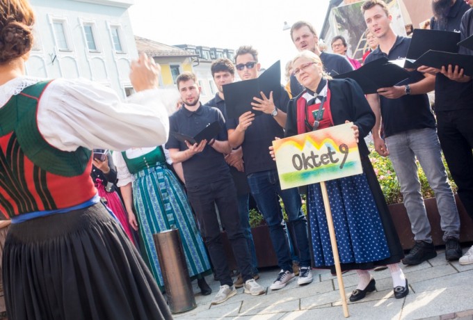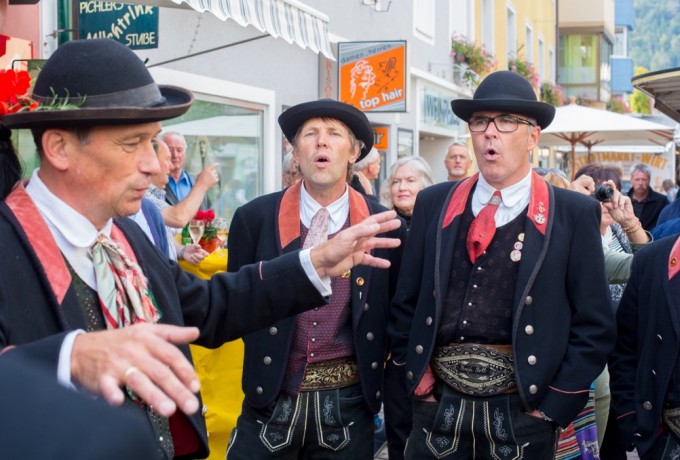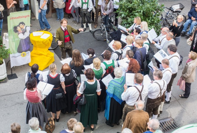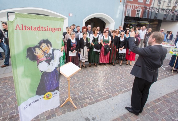 „Es ist Herbstbeginn und immer um diese Zeit stimmt das Altstadtsingen darauf ein“, freute sich die Lienzer Bürgermeisterin Elisabeth Blanik und Hermann Kuenz, Abgeordneter zum Tiroler Landtag und Stadtmarktler zeigte sich schon im Voraus begeistert. Namenstafeln, gestaltet von Bernd Hanser, halfen dem Publikum bei der Orientierung, welche Gruppe im Augen- und Ohrenbereich gerade ihre Sangeskunst zum Besten gab.