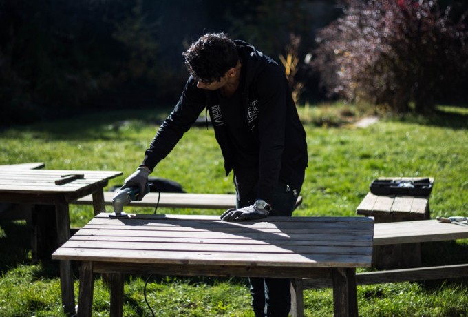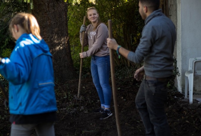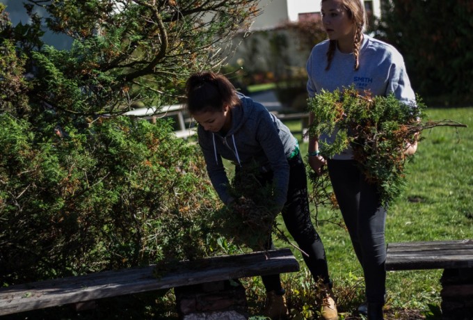 Petrus meint es gut mit den Helferinnen und Helfern – warm ist es zwar nicht sonderlich, aber zumindest die Sonne scheint. Die Laube macht schon einen viel einladenderen Eindruck und auch der Garten erstrahlt in neuem Glanz. Die Büsche wurden zurechtgestutzt und Unkraut gejätet.