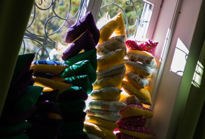 Noch 30 Stunden (10:00 Freitag) Neuer Tag, neues Glück. Nach einer kurzen Besprechung machen wir uns gleich auf den Weg zur Fachschule der Dominikanerinnen. Als wir dort ankommen staunen wir – schon weit über 30 Herzkissen haben die fleißigen Näherinnen bereits gefertigt. Und auch im Garten sieht es weitaus besser aus als am Tag zuvor.