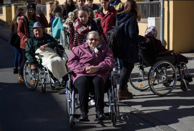 Noch 26 Stunden (14:00 Freitag) Aufbruch in Richtung Wohn- und Pflegeheim. Dort stehen die Teilnehmer und Teilnehmerinnen am Projekt „Roll on der Generationen“ bereits in den Startlöchern. Den Heimbewohner und -bewohnerinnen steht die Freude über den Ausflug zur Pfarre zur Heiligen Familie ins Gesicht geschrieben und auch die Jugendlichen sind mehr als motiviert, den älteren Herrschaften den Nachmittag so schön wie möglich zu gestalten.