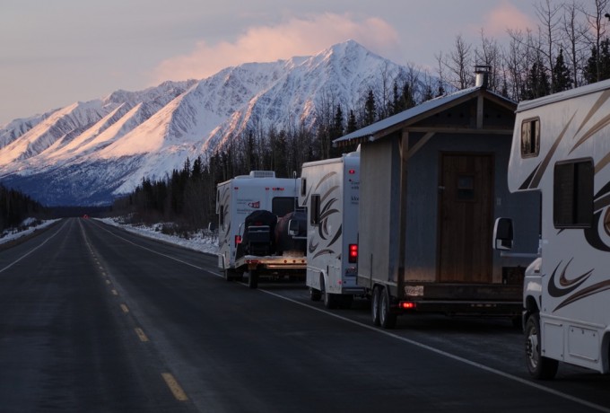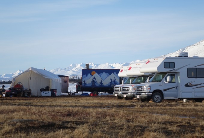 Der Osttiroler Extrem-Skifahrer zögerte nur kurz. „Ich wäre natürlich auch gerne im Athletenteam gefahren, aber Guide klang auch gut“. Und gut war es, wie sich bald herausstellte. Tom wurde eingeladen, schon vor dem Tross an den Yukon zu reisen und 14 Tage lang das Camp aufzubauen, samt viel Gelegenheit zu Helitrips zur Geländeerkundung und einigen Testfahrten auf bislang nie befahrenen Hängen. Als „Head-Guide“ war der Osttiroler für eine siebenköpfige Crew plus Pilot und Hubschrauber verantwortlich. Sein Auftraggeber hatte ihn am Airport in Whitehorse abgeholt, durch die Weiten Alaskas ging es bis zum Haines-Pass: „Es ist eine unglaubliche Landschaft, die sich dort erstreckt, wir hatten das Camp direkt am Highway, da siehst du das Band der schwarzen Straße durch eine weiße, unendliche Natur verlaufen, mit schlicht atemberaubenden Bergen“, erzählt der Osttiroler. „Als alles fertig war, spielten wir das Lieblingsspiel vor Ort, das Alaska-Wetter-Wartespiel."