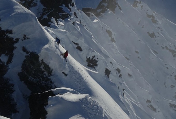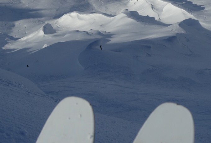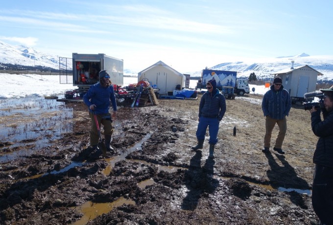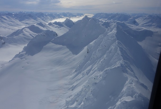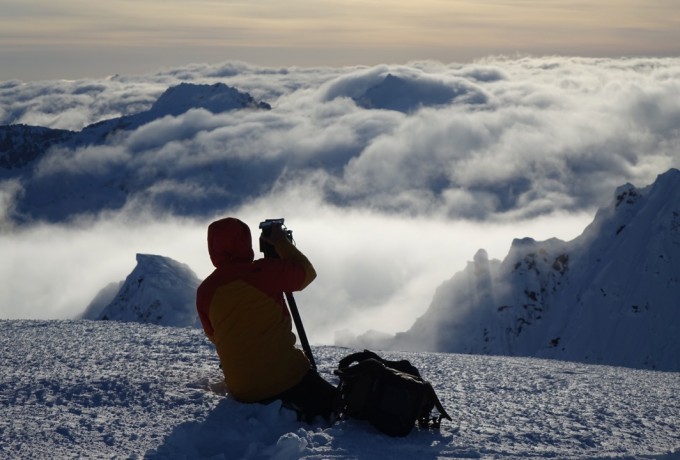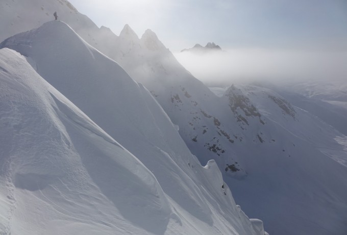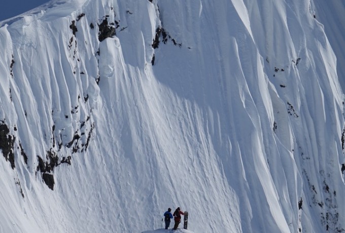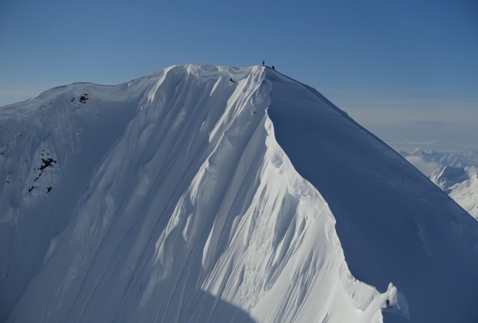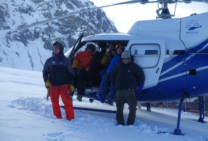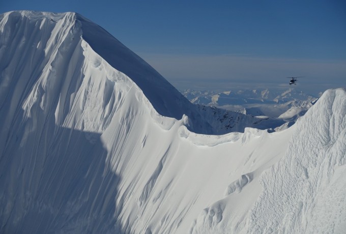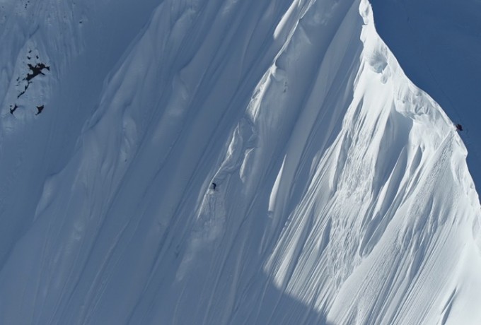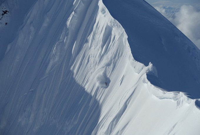Die Temperaturen stiegen, die Stimmung sank, das Camp verwandelte sich in ein Schlammloch – und dann, nach sieben Tagen, war es da. Das Wetterfenster. Jetzt war Tempo angesagt, bei den ersten Erkundungsflügen durch endlose weiße Gebirgswelten. Wo sind geeignete Landeplätze, wo gute Hänge und Locations für einen Filmdreh im Auftrag von The North Face? Schließlich war der Locationcheck perfekt und die Riders rund um Sam Anthamatten gingen an den Start. Von der gesamten Aktion gibt es Fotos und mehrere Videos.