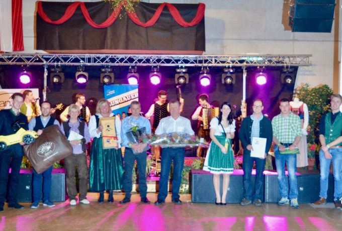 Gegen Ende der Siegerehrung gab´s dann die Lösung des Schätzspiels. Für besagten Wollball wurden 155.950 Zentimeter Wolle benötigt, Matthäus Filzmaier lag mit seiner Schätzung lediglich 850 Zentimeter daneben und räumte somit den Hauptpreis ab — eine Damentracht im Wert von 1300 Euro, zur Verfügung gestellt vom Atelier Marianna. „A Dame muas er sich hetz halt no suachn, mit dem Preis konn er relativ wenig onfongen“, konnte sich der Moderator einen kleinen Seitenhieb an dieser Stelle nicht verkneifen.
