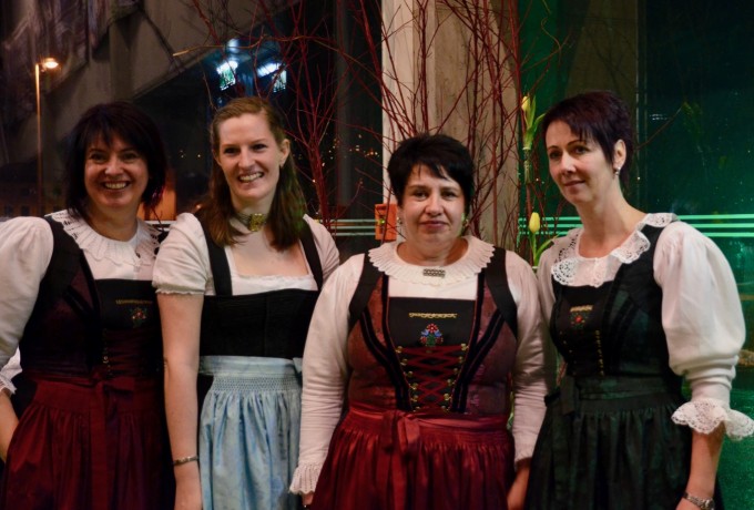 Kurz vor Mitternacht füllten sich die Sitzplatz-Tribünen der RGO Arena und die Bäuerinnen verteilten ihre traditionellen Krapfen. Mit wenigen Minuten Verspätung startete dann die Mitternachtseinlage, aufgeführt von der „Volkstanzgruppe Obertilliach“. Die Performance konnte sich sehen lassen, neben dem Schuhplattln war auch die eine oder andere „Watsch’n“ dabei.