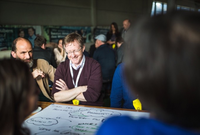 Zwischen der vormittäglichen Aufwärmrunde und konkreter Kleingruppen-Projektarbeit am Nachmittag wurde auf einem Podium diskutiert, und da trat erstmals jener Mann in der Arena auf den Plan, der am Abend vor großem Publikum viel Applaus erhielt: Werner Bätzing. Bevor Bätzing am Abend den großen Bogen spannte, kamen die Forum-Teilnehmer am Nachmittag bereits zu ganz konkreten Schlüssen und setzten auch das eine oder andere Projekt gleich in die Spur. Spontan wurde neben Co-Working und „Marke Osttirol“ auch eine Arbeitsgruppe gebildet, die sich um die Suche nach geeigneten Produkten für den Verkaufsladen der neuen Sennerei im Tauerntal kümmern soll.
