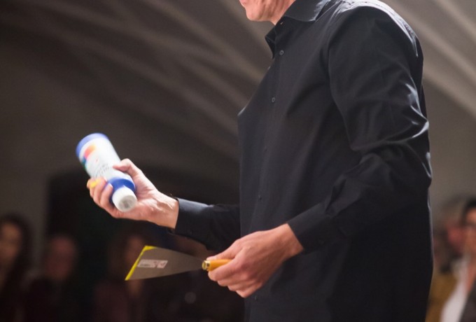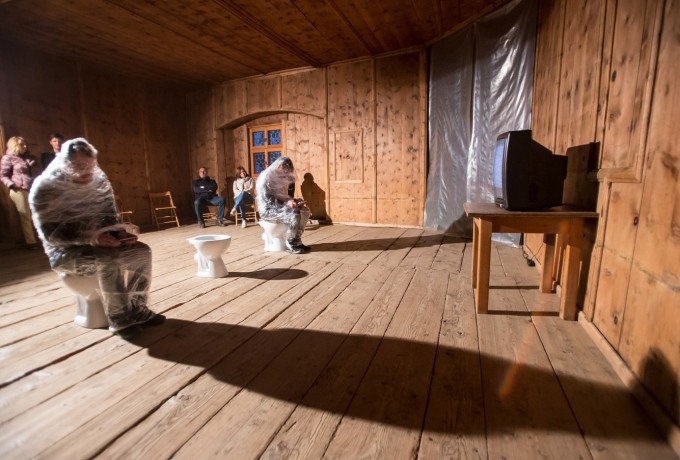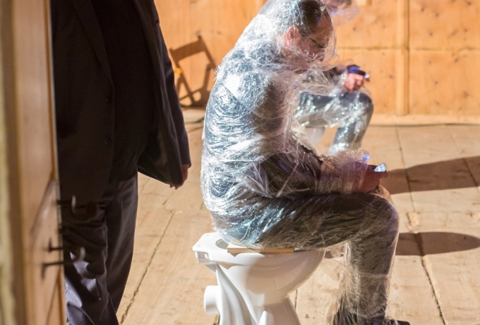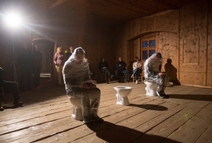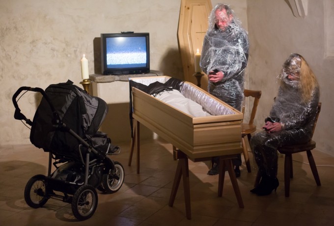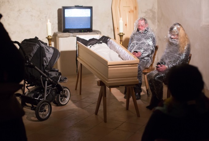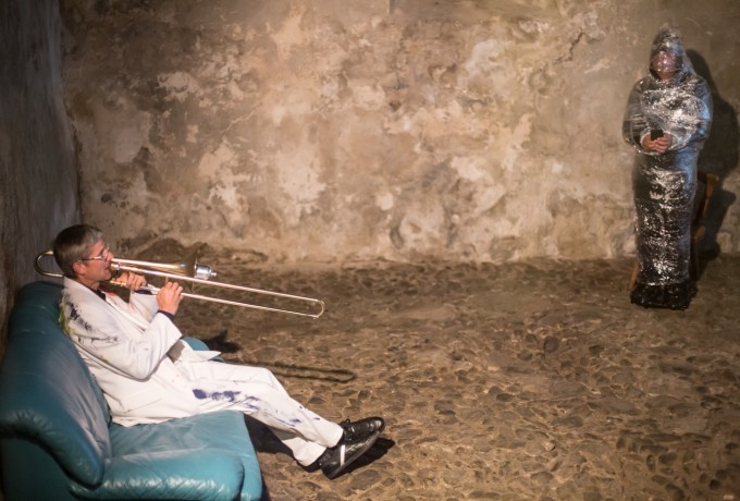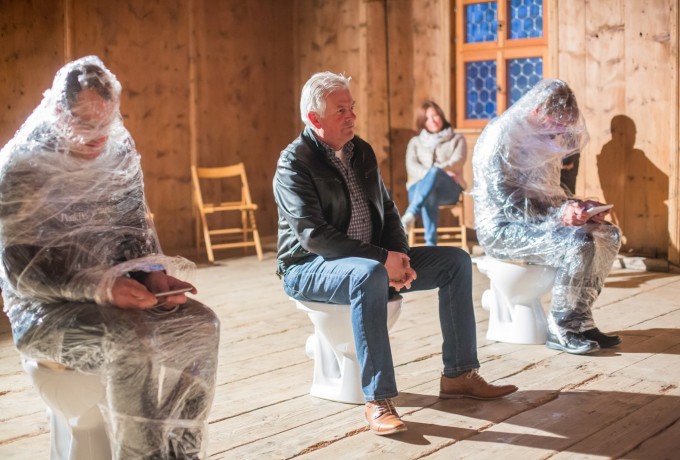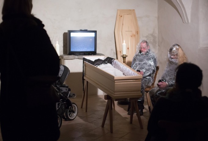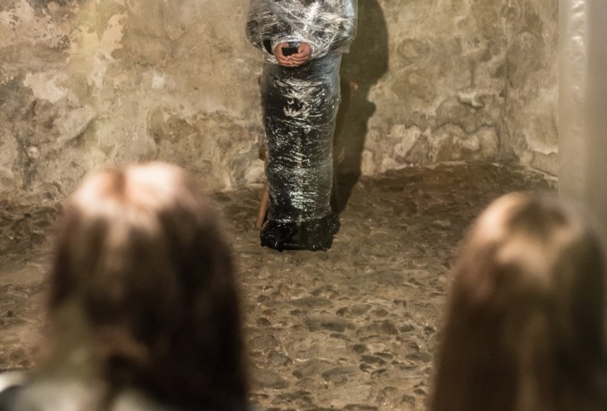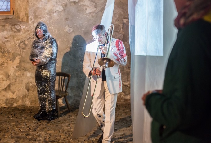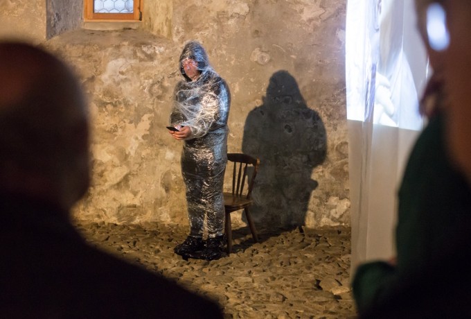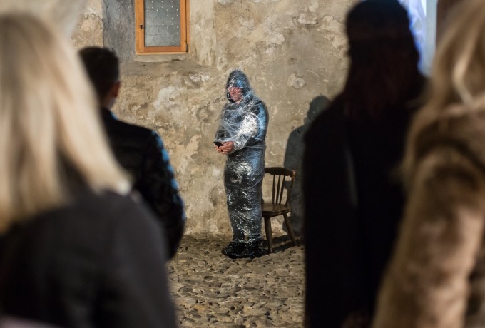 Wie schon bei seiner ersten Reduktionsperformance 2011 in den Iseltaler Wäldern setzte der Künstler auch am 21. April in der historischen Tamerburg vor allem die Stille als effiziente Methode zur Bewusstseinschärfung ein. Still sein und werden, das macht hellhörig und öffnet den Geist. Man hört nicht nur mehr, sondern sieht auch anders. Zum Beispiel die durch Plastikfolien der Realität entrückten Gestalten, die gebannt auf ihre Handys starren, gefangen in einer virtuellen Welt, selbst bei den banalsten Verrichtungen des Alltags und bis in den Tod.