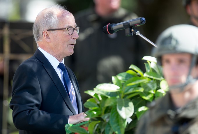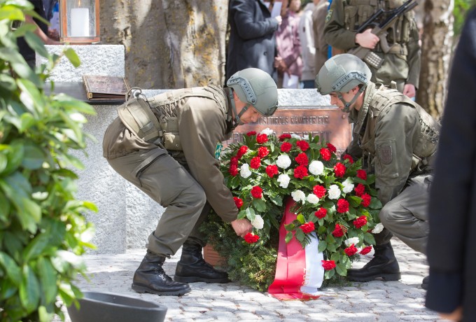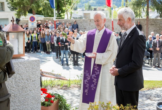 Stabswachtmeister Franz Faustini führte durchs Programm. Uwe Ladstädter, Obmann des Ausschusses für Kultur und Museum der Stadt Lienz, begrüßte die Besucher. In seiner Rede betonte er, dass Unrecht auch nach 72 Jahren noch Unrecht bleibe und wies auf die Gefahr des Vergessens hin. Durch das „Buch der Namen“ würde nun endlich dem Wunsch vieler Angehöriger entsprochen und viele Opfer des Nationalsozialismus seien endlich rehabilitiert. Vizeleutnant Gottfried Kalser hielt eine dem Gedächtnis der Opfer gewidmete Einstimmung. „Ihr seid heute Zeitzeugen“, sagte er, vor allem in Richtung der anwesenden Schülerinnen und Schüler des Lienzer Gymnasium und BORG Lienz gewandt, „wie bisher Namenlose heute endlich einen Namen bekommen.“