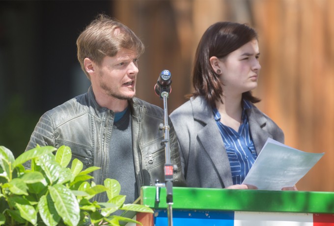 Anstelle von Initiator Pepi Wurzer, der aus gesundheitlichen Gründen verhindert war, trug dessen Sohn Josef die Ansprache zum Mahnmal vor. Er erzählte aus der Jugend seines Vaters, der in der NS-Zeit zum Widerstandskämpfer wurde. In den Sechzigerjahren setzte sich dieser dann für eine Gedenkstätte ein und erreichte unter Bürgermeister Hubert Huber die Errichtung des Mahnmals. Am 5. Mai gehe die Reise nun, da alle bekannten Opfer im Gedenkbuch festgehalten sind, zu Ende. „Sie verdienen unsere ganze Liebe, Ehrfurcht und Dankbarkeit.“ Auch Josef Wurzer wandte sich, stellvertretend für seinen Vater, insbesondere an die Schülerinnen und Schüler – auch für die Jugendlichen werde eine Zeit kommen, in der sie sich für Frieden und Menschlichkeit einsetzen müssen.