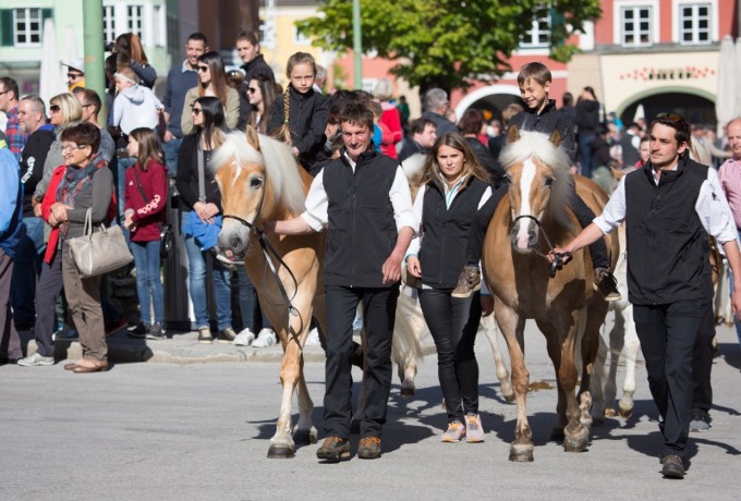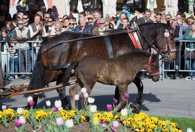 Am 6. Mai war es wieder so weit. Auf einer leicht veränderten Route – weil in der Andrä-Kranz-Gasse gegraben wird – ritt die bäuerliche Kavallerie auf dem Hauptplatz ein, mit mehr als 130 Vierbeinern, kraftvollen Norikern, hübschen Haflingern, rund 40 Fohlen und musikalischer Flankierung durch die Eisenbahner Stadtkapelle. Nach dem Defilee durch die Innenstadt bewegte sich der Zug zum Epizentrum bäuerlichen Wirtschaftslebens, der RGO-Arena in der Peggetz. Dort wurden die Schönsten unter den Vierbeiner nicht nur vorgeführt, sondern auch ausgezeichnet.