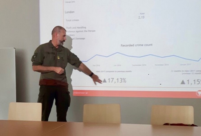 Eine Woche später besuchte Oberst Berndt Rott vom Bundesheer die zukünftigen AuslandspraktikantInnen, um mit ihnen einen ganz besonderen Nachmittag zu verbringen. Oberst Rott informierte sie zunächst in perfektem Englisch über Sicherheitsaspekte und Gefahrenmomente im Ausland und ging dabei vor allem auf die Situation in London ein, da die meisten der SchülerInnen in England auch einige Tage dort verbringen wollen. Da sie dies ohne ihre Eltern oder Lehrer machen werden, sollten diese Informationen sie nicht abschrecken, aber sehr wohl achtsam werden lassen.