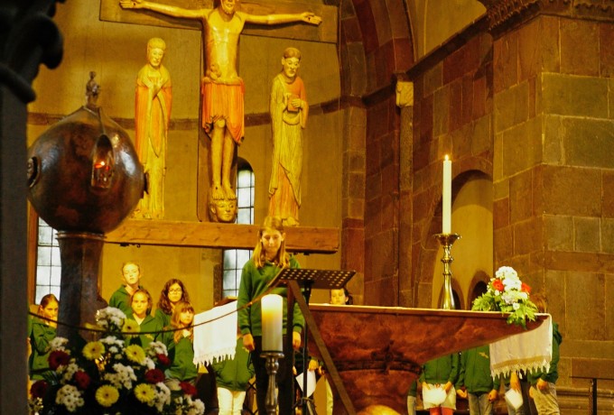 In der Franziskanerkirche gestaltete der Jugenddienst Hochpustertal eine etwas andere Kirchentour. „Mit allen Sinnen begreifen“ lautete das Motto. Mit verbundenen Augen konnte man so die Kirche und das Kloster, die vom wunderbaren Duft des Weihrauchs umhüllt waren, auf eine ganz andere Weise kennenlernen. Man „erroch“ den Wein und das Wasser und „erfühlte“ das vielseitig und aufwändig bestickte Messgewand. Gar nicht so einfach mit verbundenen Augen.
