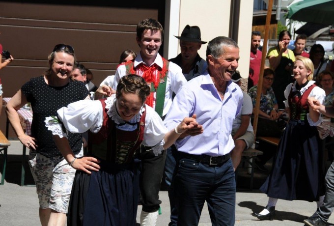 Aufgekocht wurde natürlich auch. Eine Familie verband den Vereinstag gleich mit dem Vatertag und plante ihren Rundgang nach dem kulinarischen Angebot. Morgens nach dem Hochpustertal Run schmeckte das Frühstücksbuffet im Hotel Bergland, Kaffee und Kuchen versüßten den Vormittag bei der Musikkapelle, gegrilltes Schweinerückensteak mit Kartoffelsalat stärkte mittags beim Sportzentrum, es folgten Strauben und kühles Bier nach dem Tänzchen mit der Volkstanzgruppe und der Brauchtumsausstellung bei den Bäuerinnen und abends Schlipfkrapfen am Schießstand der Schützengilde.