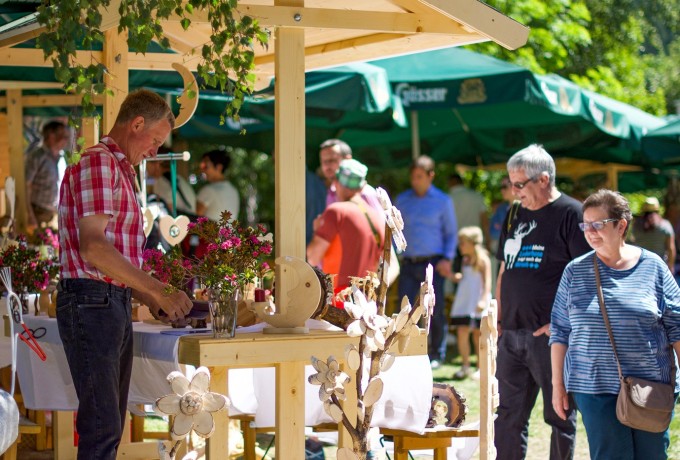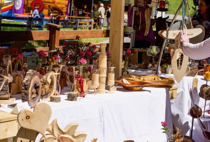 In der Nähe des Pavillon-Platzes stößt man auf das Handwerksdorf, in dem Deferegger Künstler ihre Unikate präsentieren. Besonders von den furchteinflößenden Krampuslarven sind die Urlaubsgäste begeistert. Sie sind das Fotomotiv schlechthin, Almrosen hin oder her.