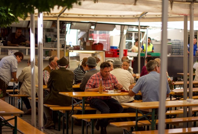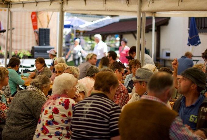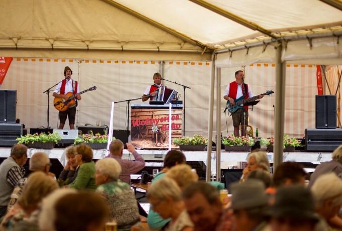 Heimische Wirte und Vereine kümmern sich um das kulinarische Wohlbefinden. Am Samstag rollten ein halbes Dutzend Reisebusse bereits am Vormittag durch das Ortsgebiet, mit Gästen, die pünktlich zum Auftakt um 11:00 Uhr vor Ort sein wollten. Die Musikkapelle Hopfgarten gab während ihrem Marsch zum Pavillon mehrere Stücke zum Besten. Anschließend sorgten die Musiker für die richtige Stimmung zum Start des Festes. Offiziell eröffnet wurde es traditionsgemäß von den Schützen und Bürgermeister Ingo Hafele, der die Festgäste begrüßte.