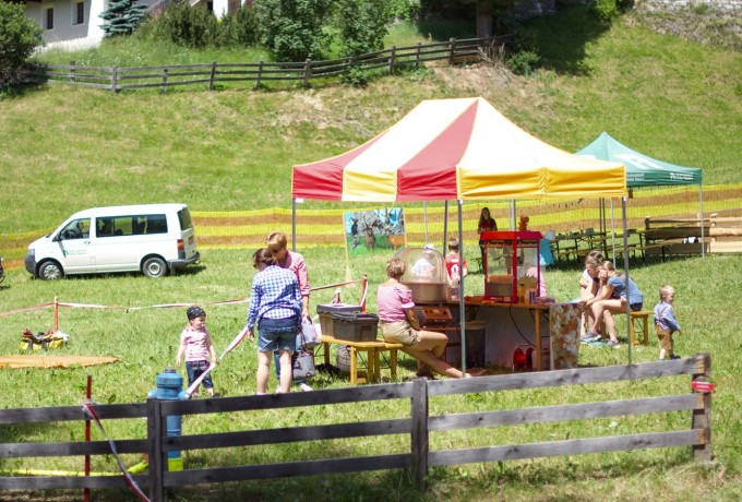 Im Familiennest im Unterrain-Garten toben sich heuer Kinder und Jugendliche aus. Erstmals ist auch ein Schießstand im Almrosendorf vertreten. Direkt daneben begrüßt das ganze Wochenende über Melanie Volgger am offiziellen „Almrosenfest“-Stand ihre Gäste. Bei ihr können T-Shirts und Souvenirs erworben werden, eigens gefertigt für diesen Anlass.