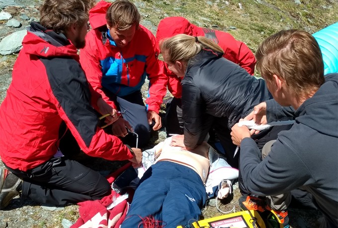 Letzte Woche fand auf der Stüdlhütte erstmals ein dreitägiger Reanimationskurs der Europäischen Gesellschaft für Wiederbelebung statt. Solche Kurse finden normalerweise in Krankenhäusern oder Seminarhotels statt und sind bei vielen Notarztausbildungen Pflicht. Nun wurden aber europaweit erstmalig 24 Notärzte und Sanitäter der Bergrettung und der Flugrettung im alpinen Gelände gemäß den Leitlinien geschult. Vom neunköpfigen Instruktorenteam unter der Leitung des Wiener Universitätsprofessors Wolfgang Schreiber fand die Reanimationsschulung sowohl in der Hütte als auch im freien Gelände statt, was vor allem die vorbeikommenden Bergsteiger in Erstaunen versetzte.
