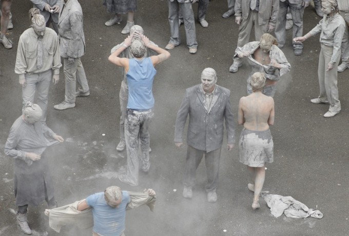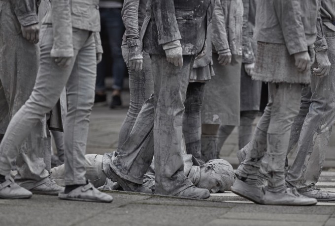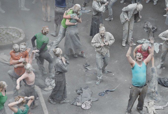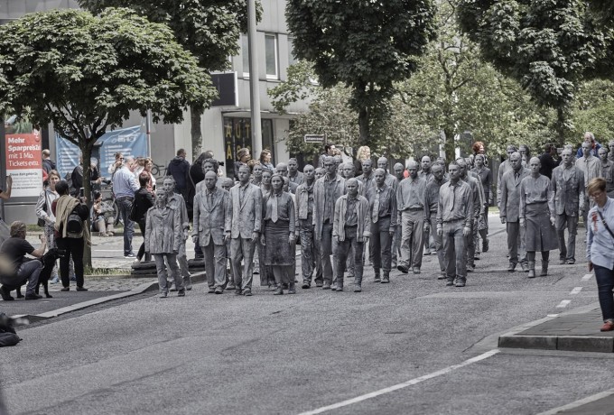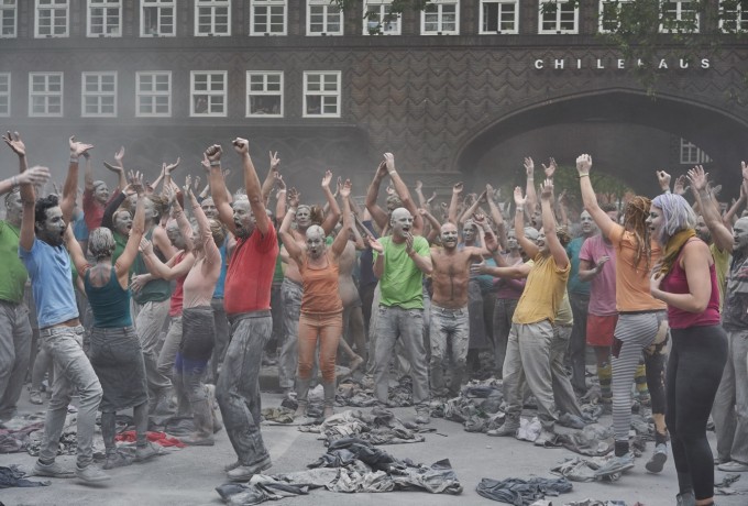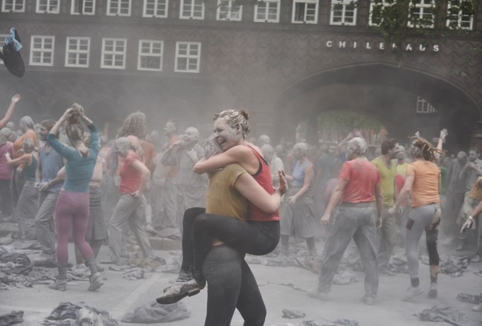 Extrem eindrucksvoll war etwa die Performance 1000 Gestalten, ein Befreiungsakt der besonderen Art. Seit Februar 2017 bereitete ein Kollektiv aus über hundert Menschen aus den Bereichen Kunst, Handwerk und Kommunikation die Aktion vor. Getragen wurde sie von vielen Freiwilligen, die als Darsteller oder Unterstützer mit Zeit, Engagement, Geld- und Sachspenden halfen. Sie erschufen eindrucksvolle Bilder einer mühsamen, aber gelungenen Befreiung. Bilder, die es verdient hätten, anstelle der brennenden Barrikaden aus dem Schanzenviertel, gezeigt zu werden. Einige davon möchte ich den LeserInnen in Osttirol deshalb nicht vorenthalten. Die Bilder stammen von den FotografInnen Andrea Rüster, Christian Angl und Willem Thomsen: